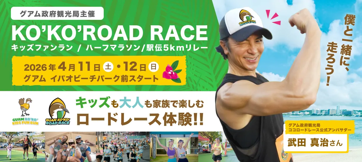 特別な体験が待っている2026年のグアム・ココ・ロードレースにぜひ参加してみてはいかがでしょうか。美しい自然の中で、武田真治さんと共にランニングを楽しむ素晴らしい機会を逃さないでください。