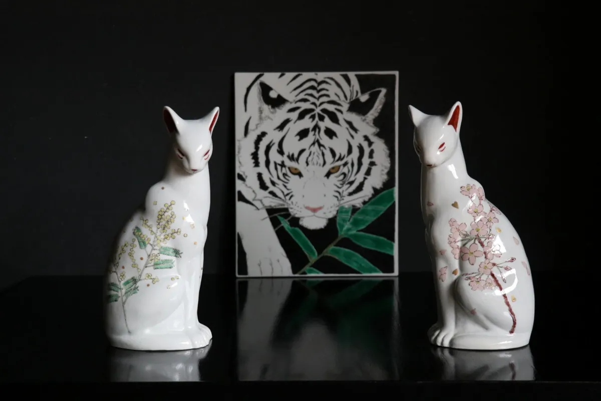 この特別な展覧会は、伝統的な九谷焼の素晴らしさを再発見する機会です。美しい草花や愛らしい白い動物たちの作品を通じて、楽しみながら日本の文化に触れることができるでしょう。ぜひお越しください。