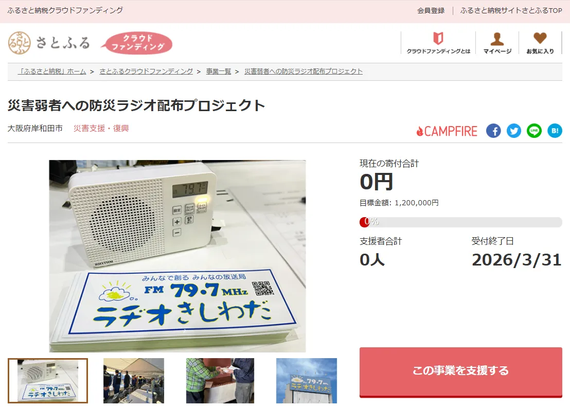 今後もさとふるは、様々なプロジェクトを通じて地域の特性やニーズに寄り添い、持続可能な地域社会を目指します。このラジオ配布プロジェクトが、多くの人々の安全につながることを願っています。私たちの小さな支援が、大きな変化を生むことを信じて、皆さんの温かいご支援をお待ちしております。