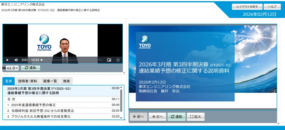こちらからアクセスできます。このスクリプト付き資料では、具体的な数値や財務指標が示され、経営陣の考え方なども詳しく記載されています(視聴期限は2026年5月末まで)。