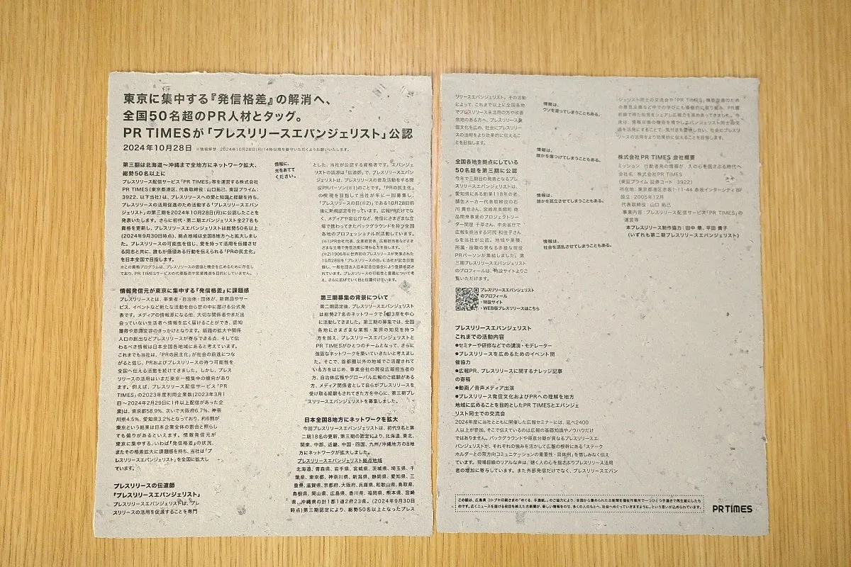 2024年10月28日、PR TIMES株式会社は特別なプレスリリースを発表しました。これは同社が「プレスリリースの日」にちなんで配信したもので、手漉き紙にブラックライト印刷が施された独創的な作品です。その特別な詩的な形態は、有限会社コトブキ印刷が展開する「めぐる、手漉紙。」とのコラボレーションによって実現されました。