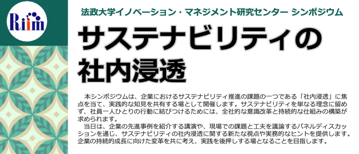 2025年3月10日、法政大学にて「サステナビリティおける社内浸透」シンポジウムが開催されます。このイベントは、一般社団法人サステナビリティコミュニケーション協会の代表理事である安藤光展氏が主宰しており、企業におけるサステナビリティの社内浸透に焦点を当てています。