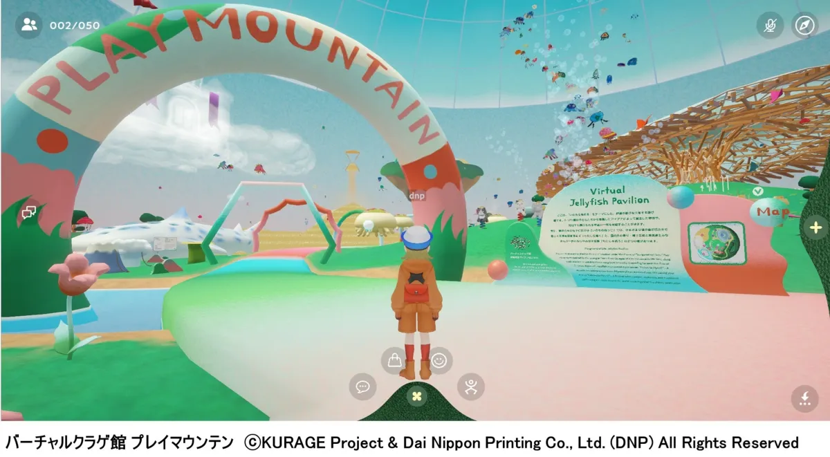 バーチャルクラゲ館は、物理的なクラゲ館と同じく、「プレイマウンテン」「バーチャル創造の木」「いのちの根っこ」といった三つの空間に分かれています。それぞれの空間では、遊ぶ楽しさと創造性を広げるために設計されており、リアルでは体験できないユニークな遊具が登場します。例えば、プレイマウンテンでは、まるで花火のように空高く飛ぶことができるアトラクションや、近づくと逃げる遊具が用意されており、バーチャルならではの楽しみが広がります。