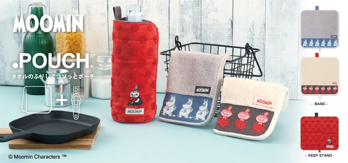 株式会社アイアップが、タオルのふりをしてコソッと隠せるポーチ「どっとポーチ(.POUCH)」に、新たに「ムーミン」のデザインを追加し、2026年1月下旬より販売を開始します。今回の新作は、全3種類。2種類の基本的なデザインを持つ「どっとポーチ ベーシック」と、保温・保冷機能を備えた「どっとポーチ キープスタンド」です。