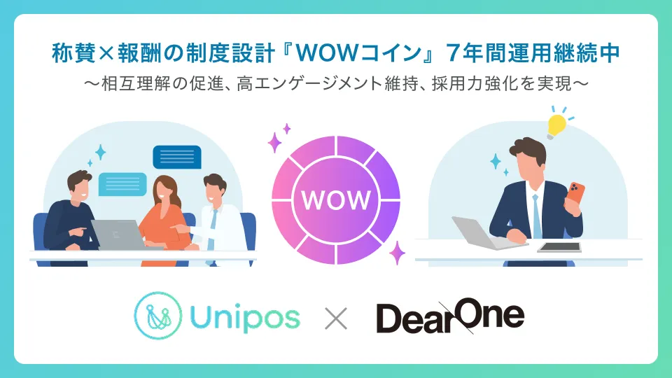 DearOneが掲げるビジョン『WOWを創る』は、社内外において期待を超えた価値を提供することを目指すものです。2018年に開発されたこのビジョンは、当時30名の社員から始まりました。彼らはUniposの「具体的な称賛」を通じて、相互の理解と連携を深めることを重視しました。