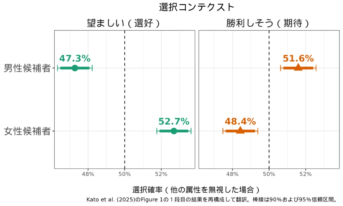 1. 日本の有権者は、意識的には男性候補よりも女性候補を好む傾向が見られました。