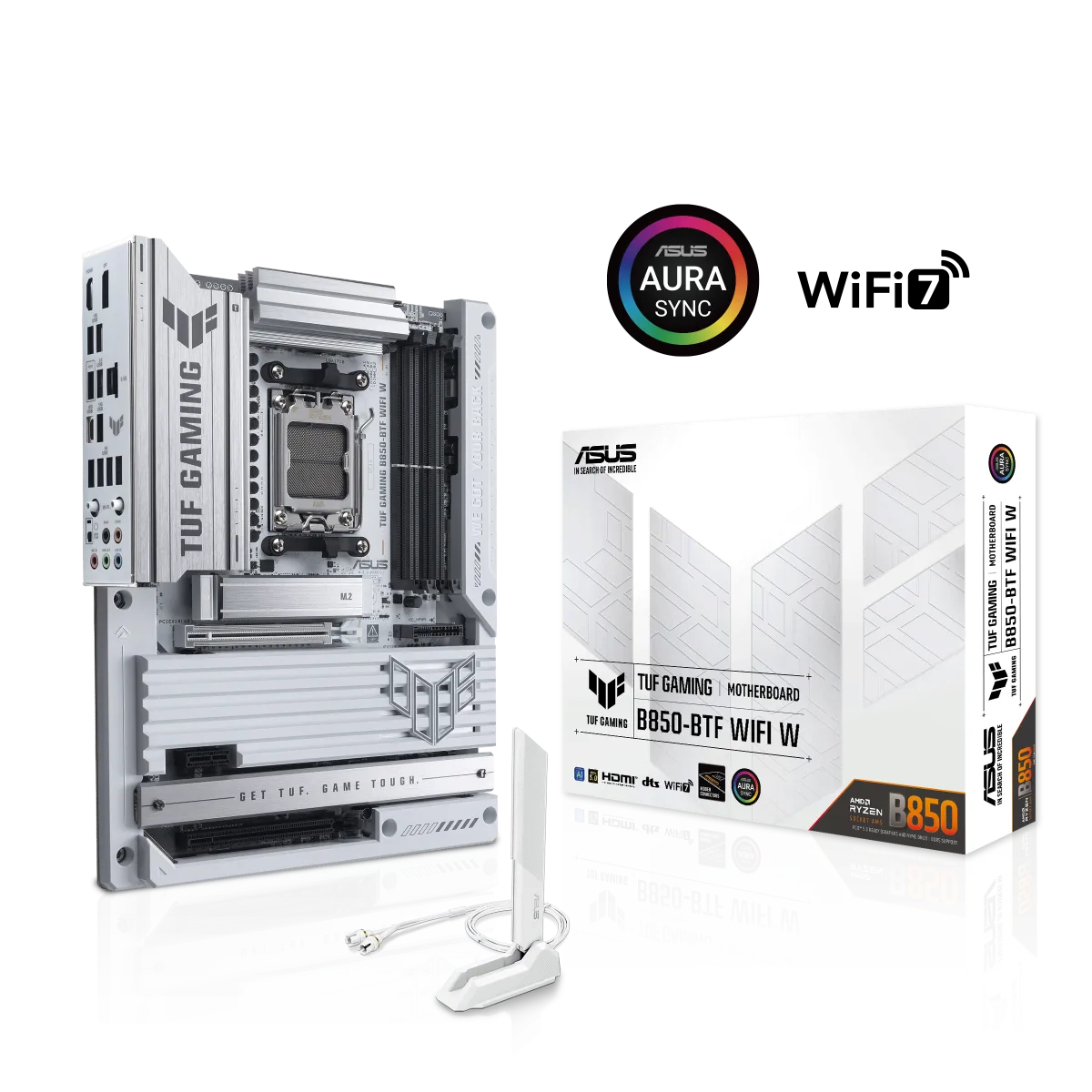 『TUF GAMING B850-BTF WIFI W』は、AMD AM5ソケットに対応したB850チップセットを搭載しており、配線の整理が非常に簡単です。リリースされたこのマザーボードは、初めて自作PCを組み立てるユーザーも手軽に扱える設計となっており、隠しコネクタデザインにより、通常は上級者でないとできない美しい見た目を実現しています。