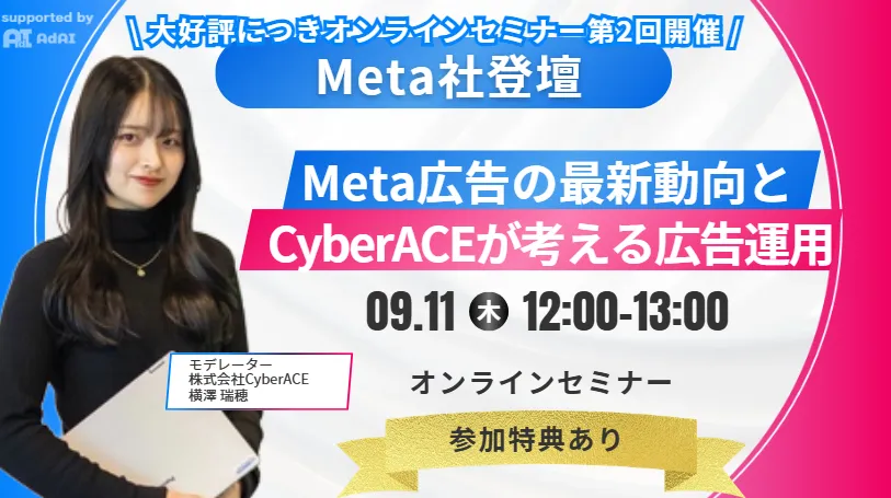 2023年9月11日(木)12時より、Meta社の専門家を招いて、オンラインセミナーを開催します。このセミナーは、日々進化を続けるMeta広告の運用方法についての最新情報を提供することを目的としています。参加者は、広告戦略の見直しやアップデートを行う貴重な機会を得ることができます。