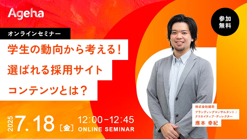 新卒採用を行う企業にとって、採用サイトはその企業の「顔」とも言える重要な存在です。2025年7月18日(金)に開催される株式会社揚羽(東京証券取引所コード9330)のオンラインセミナー「学生の動向から考える!選ばれる採用サイトコンテンツとは?」では、採用サイトを通じてどのように自社の魅力を効果的に伝えられるかのヒントが得られます。