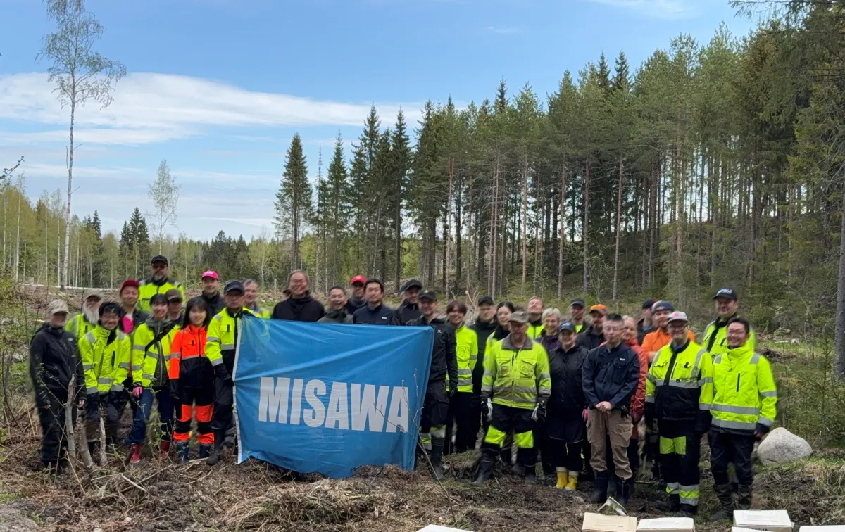 5月23日、MHFはユヴァ町ヌーティランマキにて行った植林活動には、同社の従業員をはじめ、ミサワホームの社員や協力企業からも参加者が集まりました。参加者の集合写真には、彼らの熱意と環境保全に向けた思いが見受けられました。