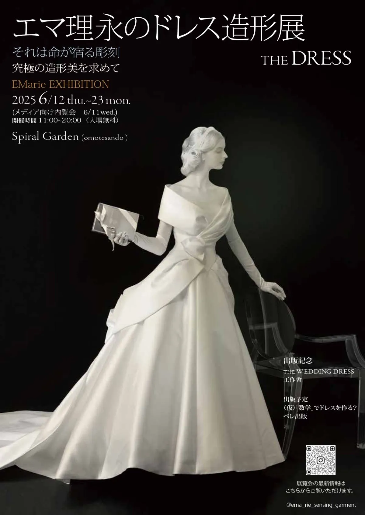 東京都渋谷区神宮前で、エマ理永による初のドレス造形展「エマ理永のドレス造形展 THE DRESS」が開催されます。この展覧会は、究極の造形美を追求する彼女の作品群を通じて、知的な女性たちに支持される理由を探ります。