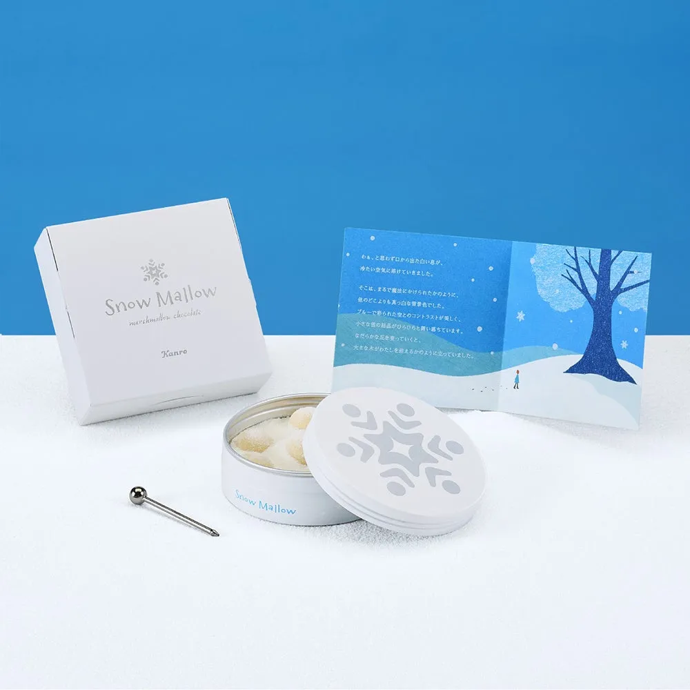 スノーマロウは、まるで雪のようなくちどけを楽しむことができ、粉雪ショコラに覆われた雪玉のような粒が入った特別な缶に入っています。缶にはシルバーピックが付いており、購入者は粉雪の中から雪玉を探す「雪玉さがし」や粉雪をすくう「スコップすくい」を楽しむことができます。「A story of Snow Mallow」というショートストーリーも同梱されており、商品にさらに深い体験を加えてくれます。
