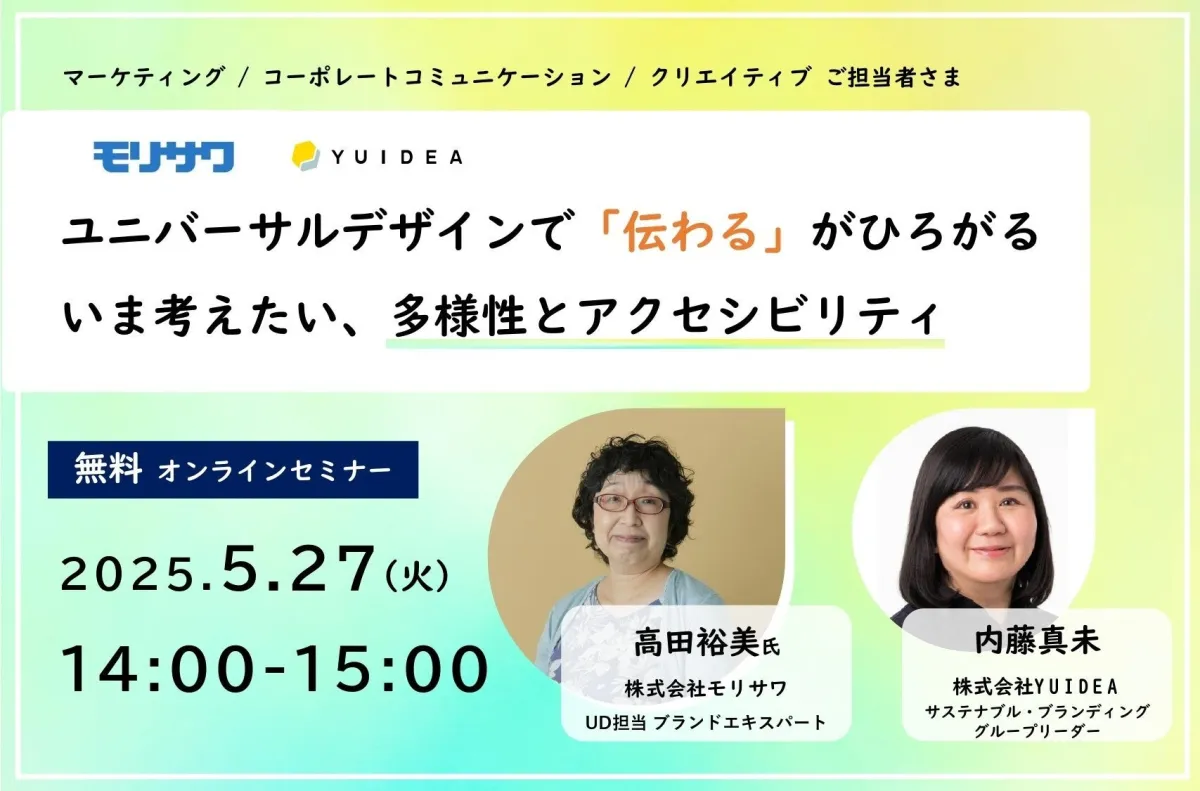 2025年5月27日、株式会社モリサワと株式会社YUIDEAの共催による無料オンラインセミナーが開催されます。テーマは「ユニバーサルデザインで『伝わる』がひろがる。いま考えたい、多様性とアクセシビリティ」です。このセミナーの背景には、2024年に改正される障害者差別解消法があります。新法では、障害のある方々への合理的な配慮が企業や団体において義務付けられ、これまで以上に誰もが受け取れる情報発信とコミュニケーションの設計が必要とされています。