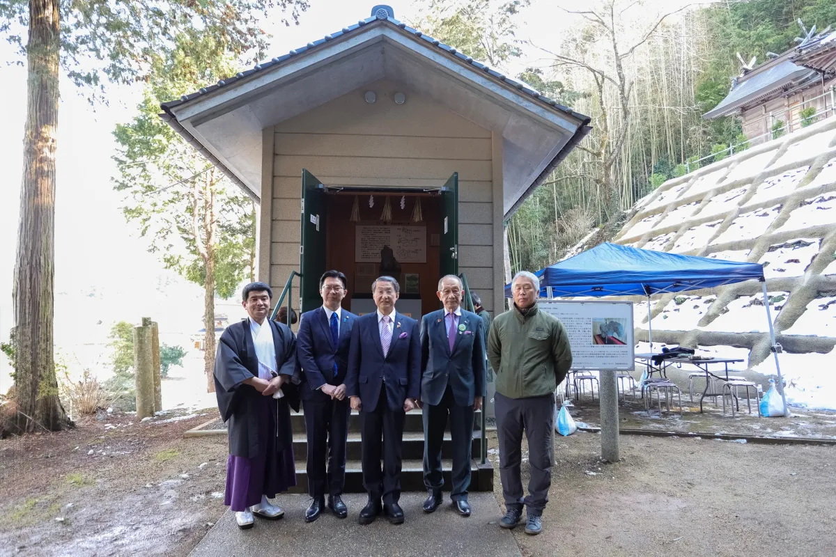 式典は午前11時30分に始まり、周囲にはまだ残雪の残る神社の境内に多くの来場者が集結しました。平井県知事や伊木米子市長が挨拶し、石馬の重要性と地域の魅力を伝えました。平井知事は「石馬」は地域の宝であるとし、観光客に向けての呼びかけを行いました。また、伊木市長は公開をきっかけに地域の歴史が皆に知ってもらえることを期待しました。