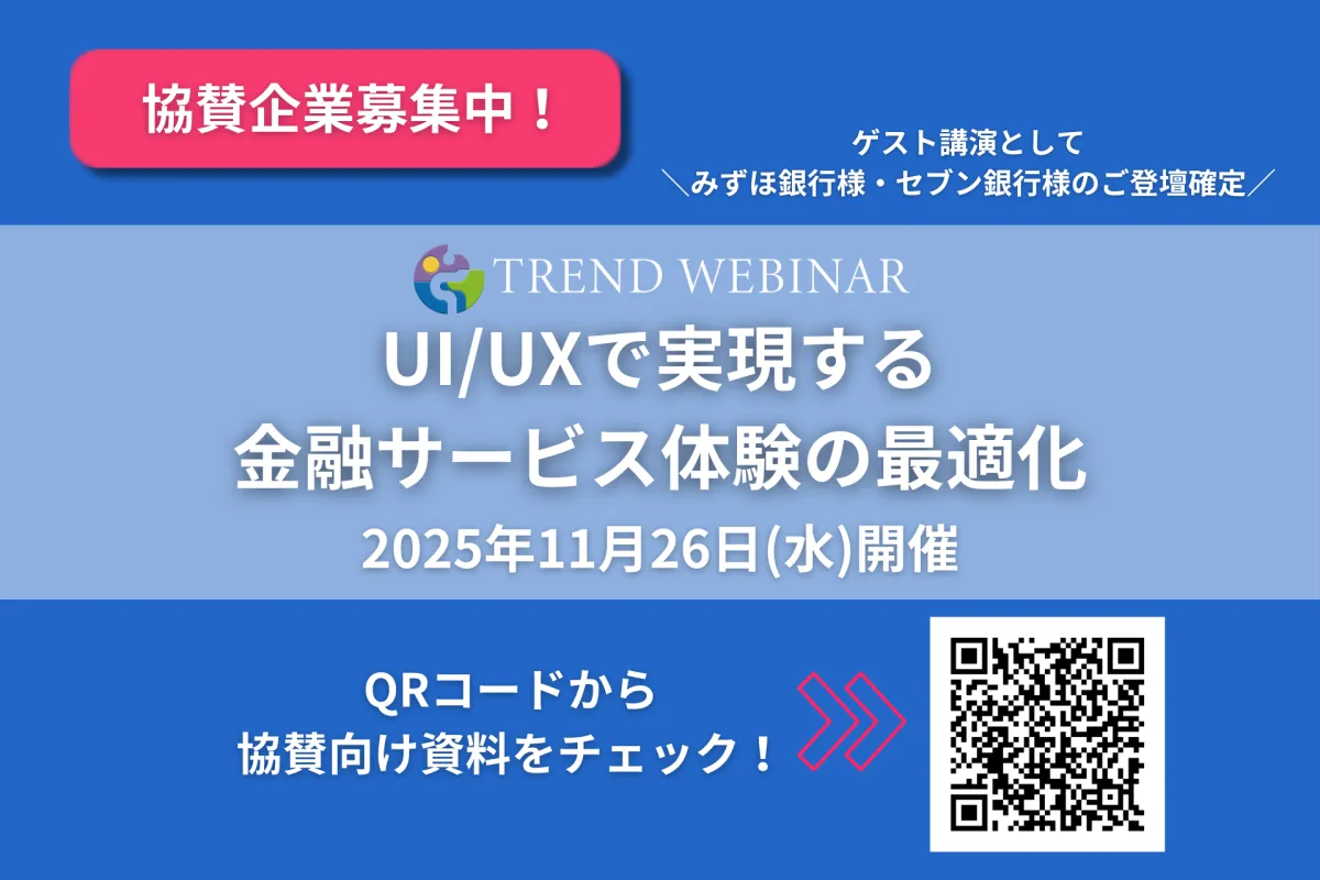 株式会社セミナーインフォは、2025年11月26日に「UI/UXで実現する金融サービス体験の最適化」というテーマでTREND WEBINARを開催します。金融業界の経営者や管理者、デザイン戦略に関わる担当者にとって、業務をさらに進化させるための貴重な学びの場とすることを目指しています。