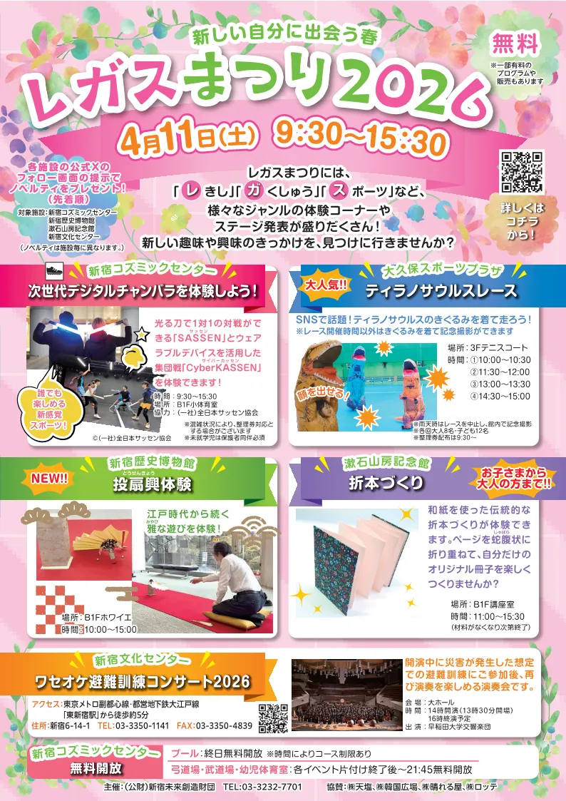 「レガスまつり2026」は公益財団法人新宿未来創造財団が主催する体験型イベントで、今年のテーマは「新しい自分に出会う春」。ここではスポーツや文化、さらにはワークショップなど、多種多様なアクティビティが用意され、多くの人々を迎えました。中でも、全日本サッセン協会が出展したSASSENとCyber KASSENは、特に訪れた人々の心を掴みました。