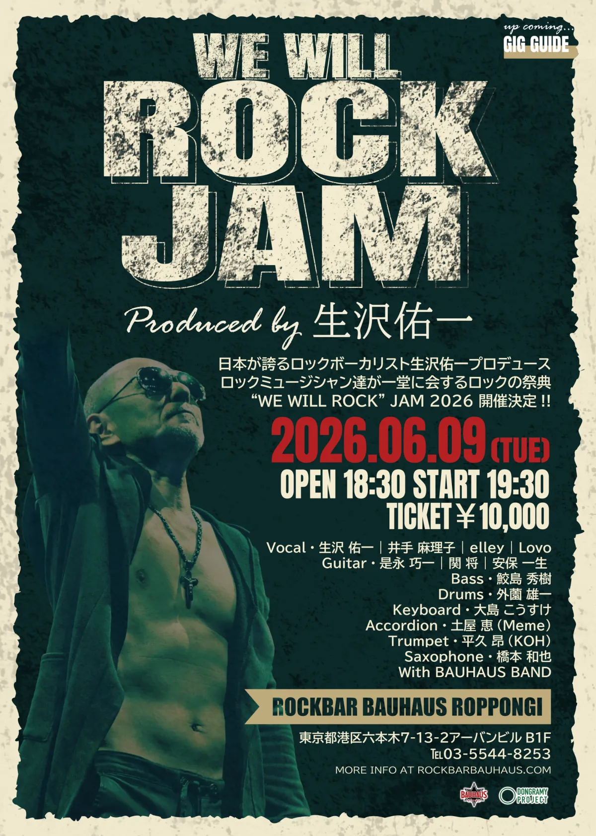 2026年6月9日、東京六本木のライブハウスROCKBAR BAUHAUSで、ロックファン必見の特別な音楽イベント『WE WILL ROCK JAM 2026』が開催されることが決まった。このイベントは、日本を代表するロックボーカリストである生沢佑一がプロデュースし、ボーカルを務めるもので、豪華なミュージシャンたちが集結し、ハードロックをはじめとする多様なジャンルの名曲を新たな形で再現するJAMセッションが展開される。