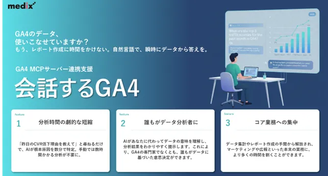 株式会社メディックスが、企業のマーケティングや広報活動を一新する新サービス「会話するGA4」を発表しました。このサービスは、Google Analytics 4(GA4)のデータをAIと連携させることにより、自然言語でのデータ分析を可能にします。これにより、繁雑なデータ分析業務から解放され、担当者は本来の業務に集中できる環境が整います。