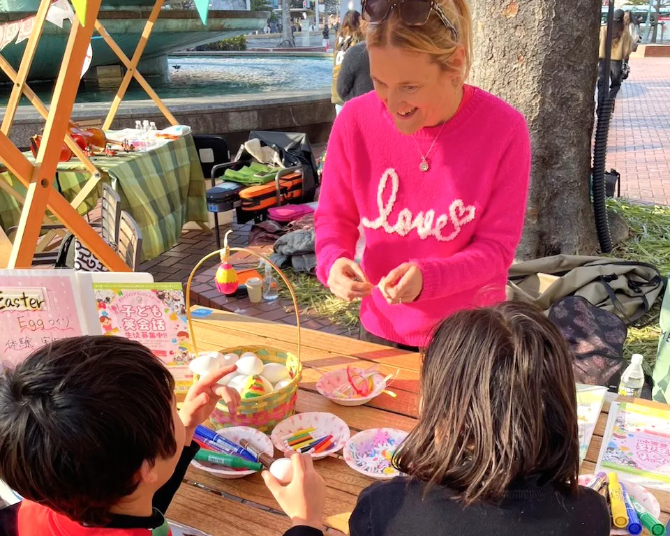 当日は、参加者たちが外国人講師と共に英語を使いながら、イースターアートに挑戦。特に、殻に模様を描くエッグアートは子どもたちにとって、ただの工作以上の楽しさがありました。英語でのやり取りを通じて新しい表現を学ぶことで、子どもたちは笑顔と共に自分自身の個性を次々と発揮していきました。