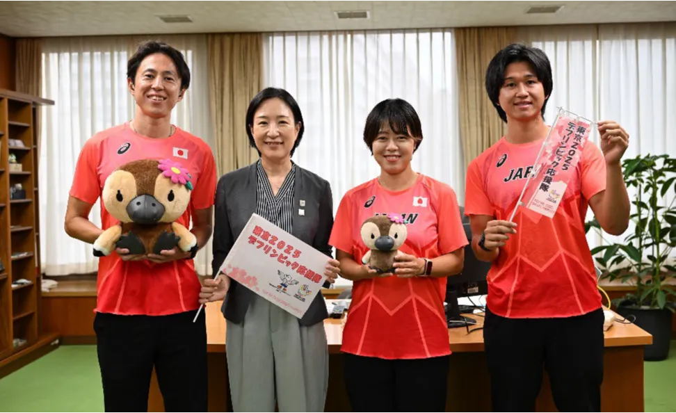 東京2025デフリンピックに向け、東京パワーテクノロジー株式会社(以下、TPテクノロジー)の代表的なアスリートである門脇翠選手、長内智選手、北谷宏人選手が9月18日、江東区の大久保朋果区長を訪れました。この表敬訪問では、選手たちが東京で開催されるデフリンピックへの意気込みや、競技に対する思いを伝える機会となりました。