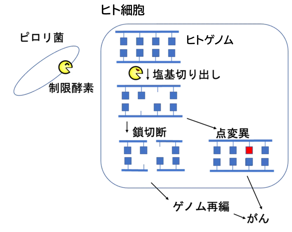 そこで研究者たちは、ピロリ菌が持つ制限酵素HpPabIに着目しました。HpPabIは特定のDNA塩基を切り出す唯一無二の性質を持ち、この作用ががんのリスクにどのように関係しているのかを探求したのです。