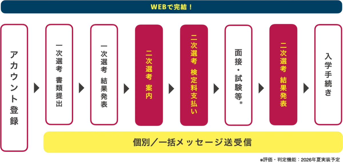 また、この機能は総合型選抜にも対応しており、検定料を段階的に支払うシステムをスムーズに管理することが可能です。これにより、志願者が選考の各段階を通過した後の費用負担も軽減されます。