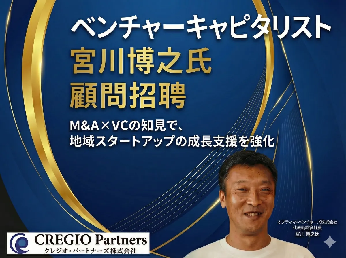 クレジオ・パートナーズは、地域に根差したM&A及び資本政策の専門家として、これまでに数多くの企業の成長と承継を支えてきましたが、スタートアップへの支援ではベンチャーキャピタルの視点からのファイナンス戦略やIPO支援が欠かせません。そこで、宮川氏の豊富な経験とネットワークが必要とされました。