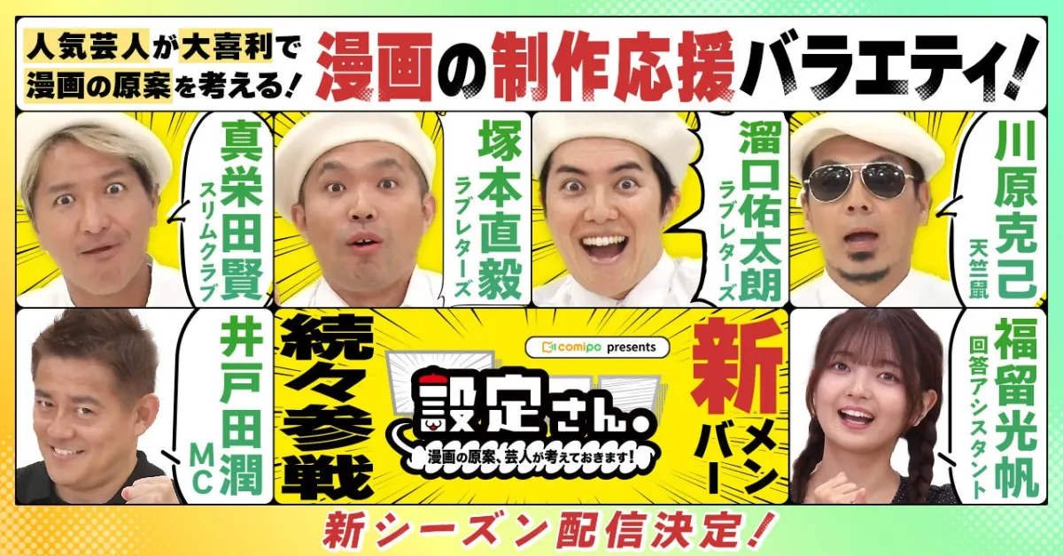 株式会社viviONが制作するYouTube番組「設定さん。」のシーズン8が、2023年12月5日木曜日の18時から配信開始されます。このシリーズでは、お笑い芸人たちが大喜利形式で漫画の設定を担当し、それを元にした漫画作品をプロ・アマ問わず募るユニークなプロジェクトです。