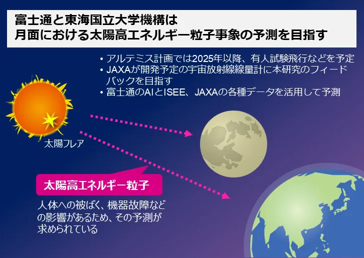 富士通株式会社と国立大学法人東海国立大学機構は、国立研究開発法人宇宙航空研究開発機構(JAXA)との協力により、新たな月探査の技術開発に乗り出します。この共同研究は、2025年2月1日から2026年3月31日までの予定で進められ、具体的には「説明可能なAI技術を活用した月・火星探査に向けた太陽放射線事前予測技術の開発」に焦点を当てています。