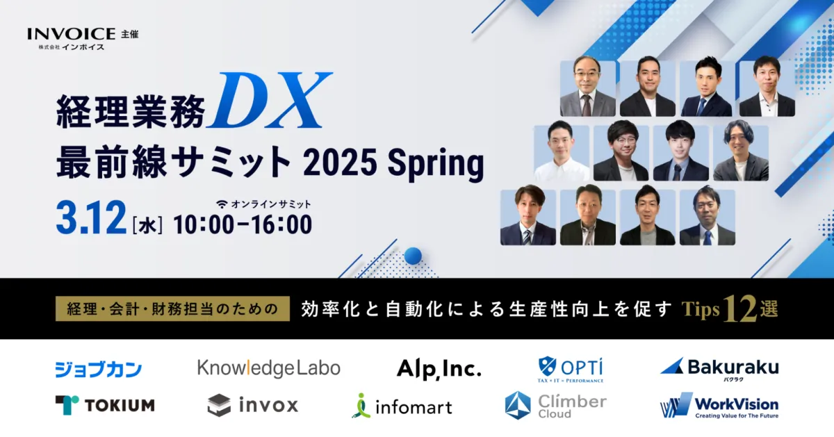 2025年3月12日(水)、オンラインで開催される「経理業務DX最前線サミット 2025 Spring」は、経理・会計・財務担当者を対象にデジタル化の最前線を探る貴重な機会です。本イベントは、株式会社インボイスが主催し、最新の経理業務DXに関する情報を提供します。参加は無料で、自宅やオフィスから気軽に参加できます。