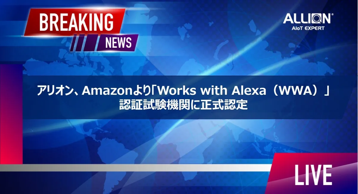 アリオン株式会社が、米国のテクノロジー企業Amazonから「Works with Alexa(WWA)」認証試験機関として正式に認定を受けました。この認定は、アリオンが提供する包括的なWWA認証試験サービスの開始を意味し、法人のお客様がスムーズに認証プロセスを進められるようサポートします。また、Alexaエコシステムとのシームレスな互換性を確保することで、多くの製品が市場での競争力をより高めることが期待されています。