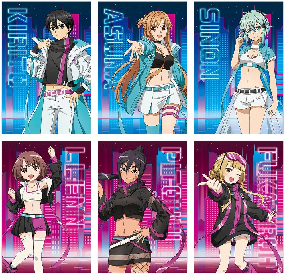 この合同フェアでは、『ソードアート・オンライン』(SAO)およびそのスピンオフ作品である『ソードアート・オンライン オルタナティブ ガンゲイル・オンライン』(GGO)からの多彩な商品が揃います。参加するための条件として、対象グッズや書籍、CD、Blu-ray、DVDの購入または予約が必要で、1,100円(税込)ごとに特典としてポストカード(全6種)が1枚プレゼントされます。特典のポストカードはサイバーネオンをテーマにしたオリジナルデザインで、コレクション必至のアイテムとなっています。