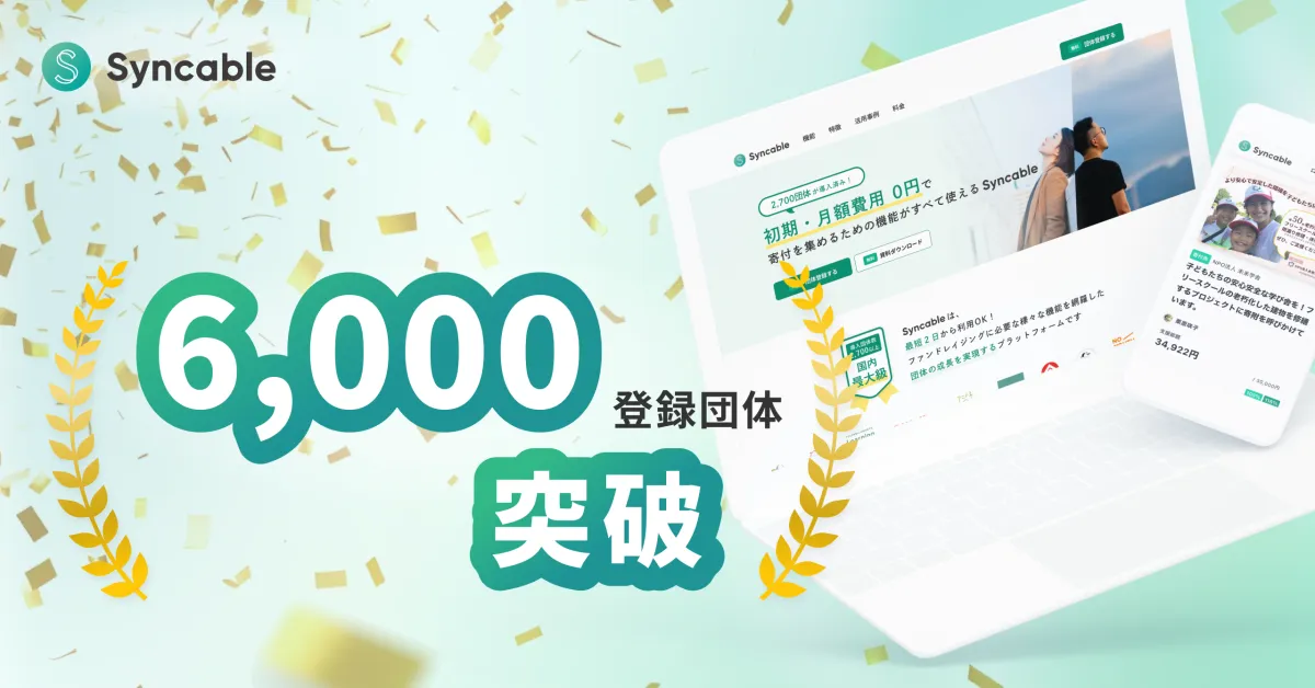 寄付の新たなインフラ、Syncableが6000団体登録を達成