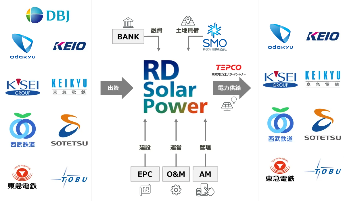 日本政策投資銀行(以下、DBJ)と関東私鉄グループの8社、すなわち小田急電鉄、京王電鉄、京成電鉄、京浜急行電鉄、西武鉄道、相鉄クリーンエナジー、東急電鉄、東武鉄道がともに力を合わせて、再生可能エネルギー事業に乗り出しました。