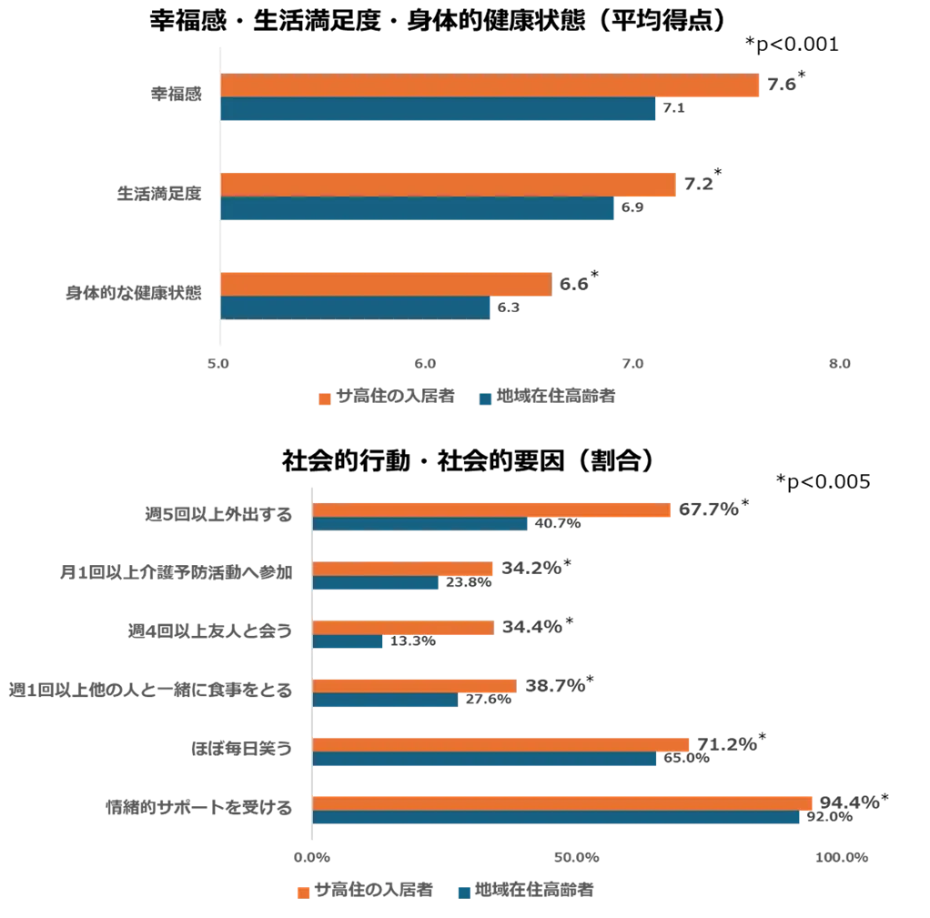 調査の結果、サ高住の入居者は以下の点で地域在住高齢者に比べて優れた結果が見られました。