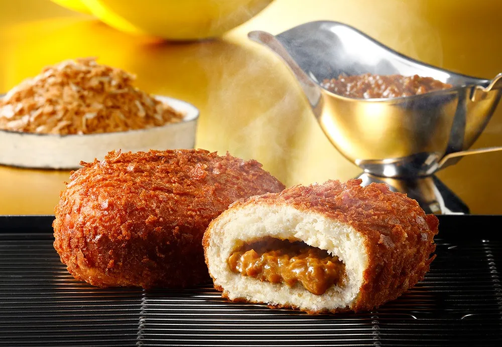 このカレーパンは、豚と牛の合挽きを玉ねぎソテーと生クリームでゆっくりと煮込んだカレーを使用しており、バナナピューレの贅沢な使用がポイントです。サクサクした衣にもこだわりがあり、その香ばしさがさらに食欲をそそります。