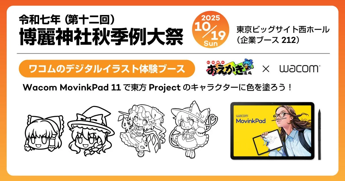 株式会社ワコムは、2025年10月19日(日曜日)に東京ビッグサイト西ホールで開催される「令和七年(第十二回)博麗神社秋季例大祭」に出展することを発表しました。このイベントには、毎年多くのファンが訪れるため、出展はワコムにとって大きな機会です。