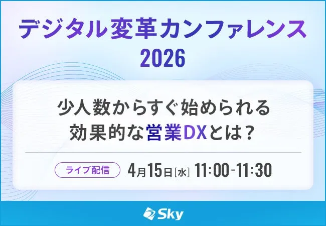 2026年4月15日(水)、株式会社リバイバル・マネジメント・フォーラムの主催による「デジタル変革カンファレンス2026」がオンラインで開催されます。このカンファレンスには、Sky株式会社が協賛し、特に営業活動のデジタル変革に焦点を当てた講演が行われます。