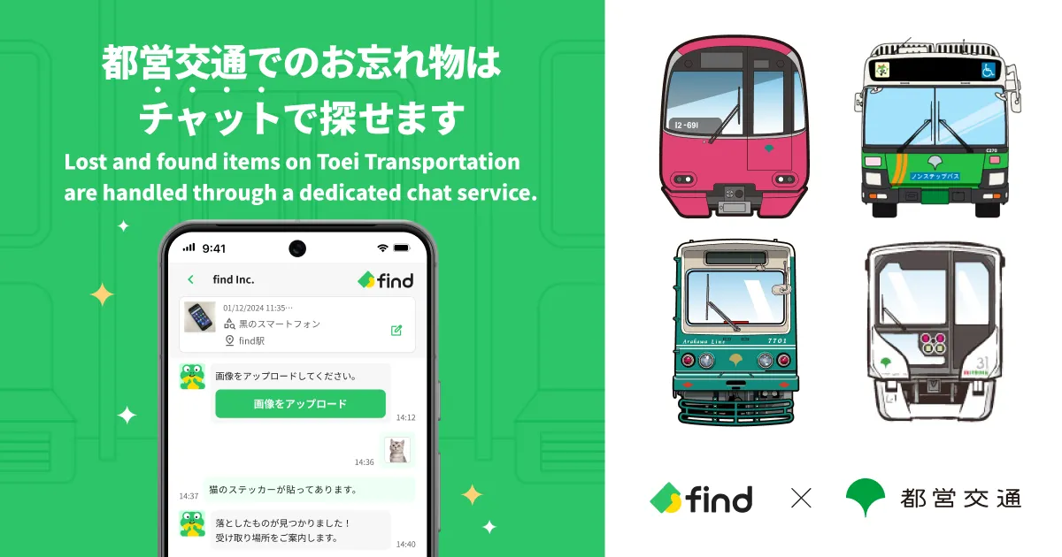東京都交通局が新たに導入する「find chat」は、スタートアップ企業の株式会社findが開発したお忘れ物検索サービスです。このサービスは、都営地下鉄やバス、さらには東京さくらトラムと日暮里・舎人ライナーでも利用できるため、都内のあらゆる交通機関でのお忘れ物を迅速かつ簡単に検索することができます。