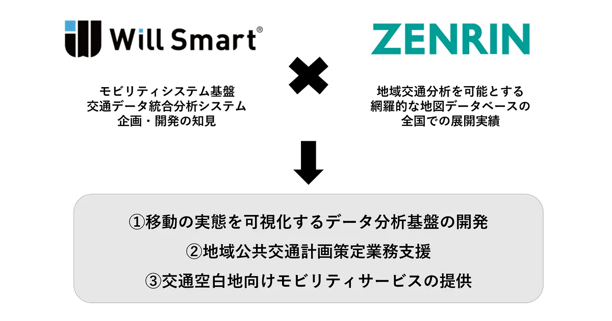Will Smartは、基幹システムや公共ライドシェアを担当し、交通データ分析システムの企画・開発に知見を提供します。一方、ゼンリンは、日本全国での「地域の移動に関する課題解決支援」における専門知識や網羅的なネットワークデータベースを活用して、地域公共交通分析支援のノウハウを提供します。この連携により、地域課題の解決力を強化し、両社の強みを最大限に活かすことが目指されています。