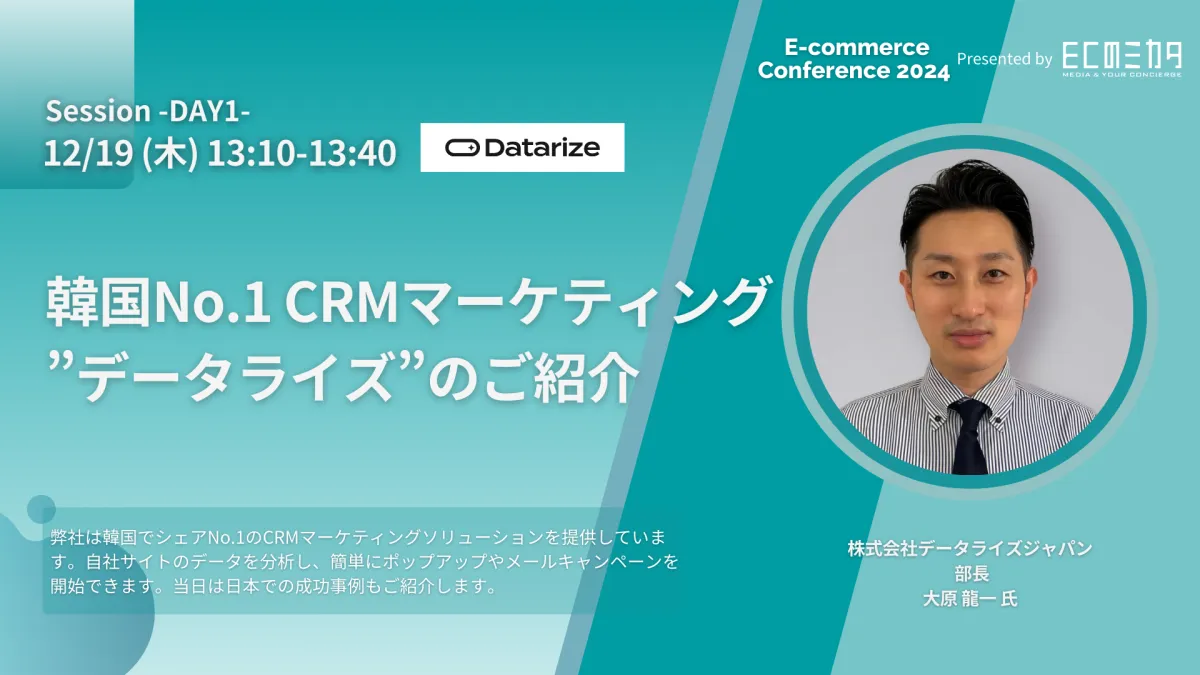 2024年12月、オンラインイベント「E-commerce Conference 2024」が開催され、韓国でNo.1のシェアを誇るCRMソリューション「データライズ」が日本市場に初めてお目見えします。このイベントは、EC業界の最新トレンドを知り、2025年以降の戦略を考える貴重な機会です。特に「データライズ」の登壇が注目されており、EC事業者に新たなマーチャンダイジング戦略を提案します。