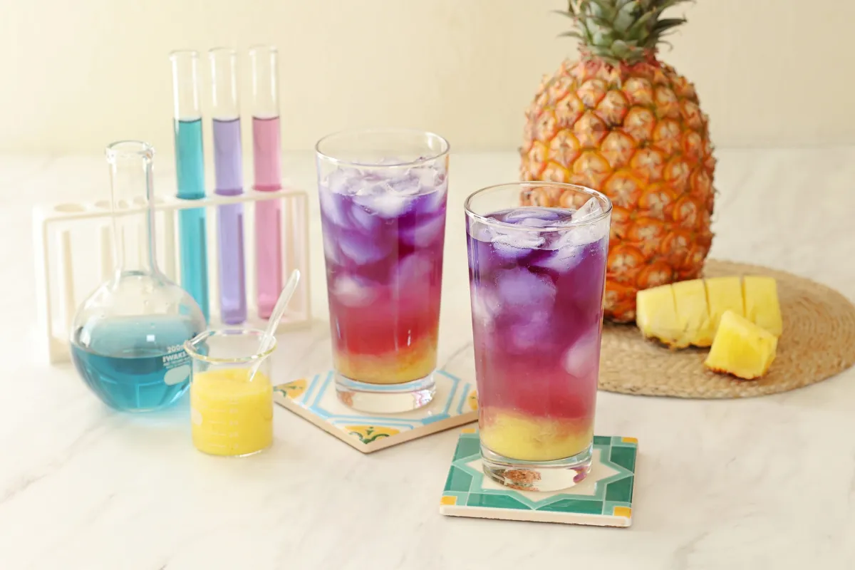 魔法のドリンク:pH反応を利用した色変化の実験を行い、科学と食材との関係を体験します。