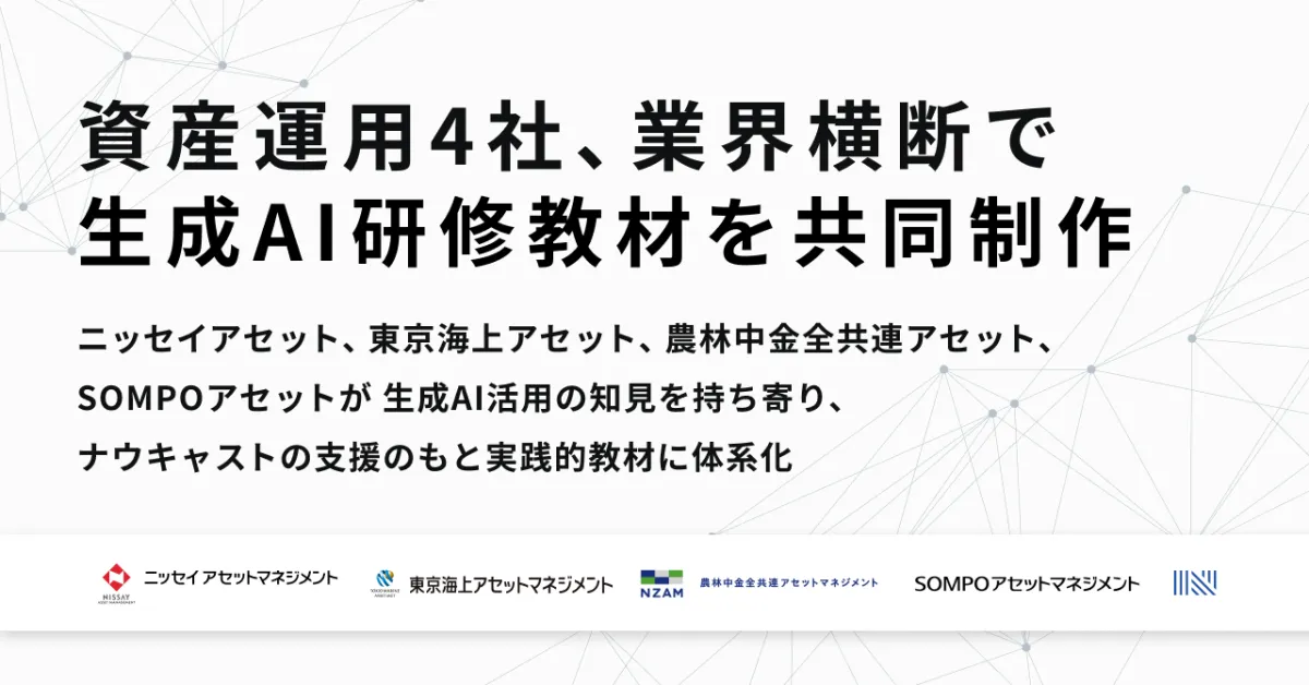 近年、資産運用分野での生成AIの活用が急速に進んでいますが、特に注目されているのが、5つの企業が共同で取り組んだ生成AI研修教材の制作です。このプロジェクトには、ニッセイアセットマネジメント、東京海上アセットマネジメント、農林中金全共連アセットマネジメント、SOMPOアセットマネジメント、そして株式会社ナウキャストの5社が名を連ねています。彼らは、資産運用業務に特化した「AIユースケーススタディ for アセマネ」という教材を共同開発し、運用会社におけるAIの実用化を目指しています。