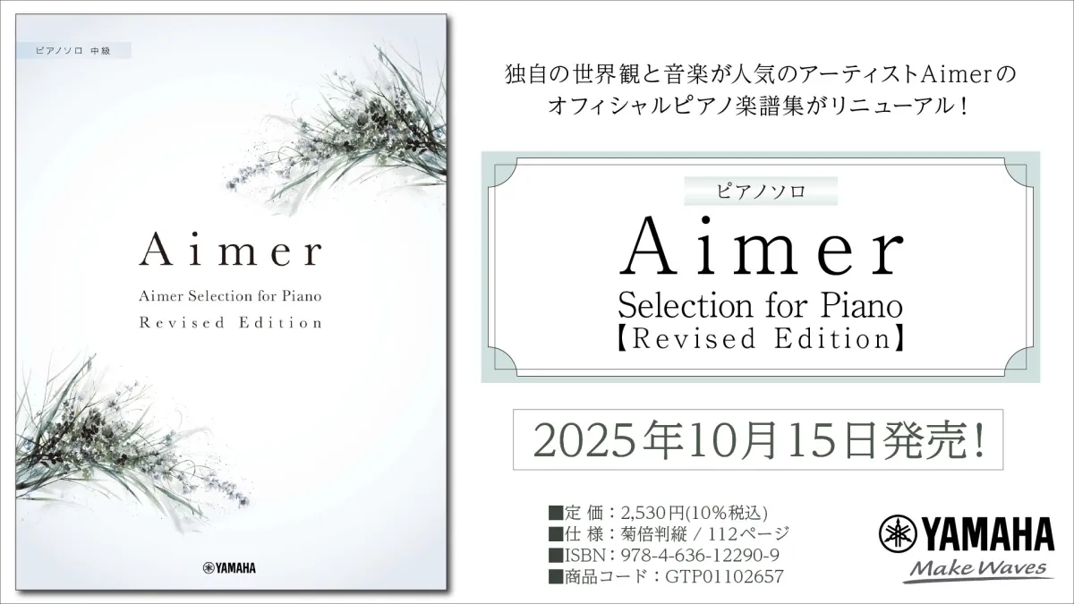 2025年10月15日、株式会社ヤマハミュージックエンタテインメントホールディングスから新たなピアノ楽譜集が発売されます。その名も「ピアノソロ Aimer Selection for Piano【Revised Edition】」。