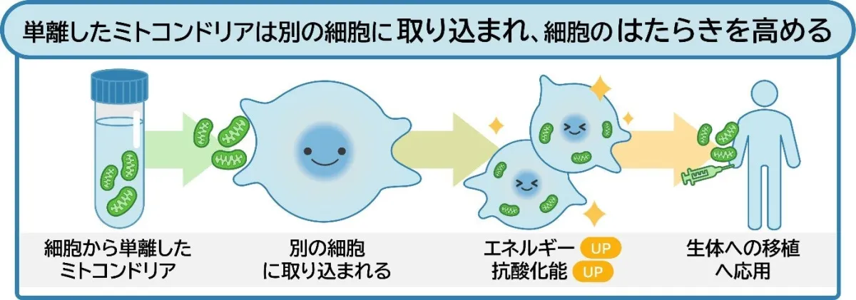 草森准教授は、「ミトコンドリアを用いた疾患治療に対する興味から研究を進めてきました。今後は、ミトコンドリア治療という新たな医療技術が、心筋梗塞や脳卒中、肝疾患、神経変性疾患など、ミトコンドリア機能不全が原因となる様々な疾患にも効果を持つことが期待されます」と述べています。この研究の成功は、次のエネルギー医療の進展に向けた大きな一歩となるでしょう。