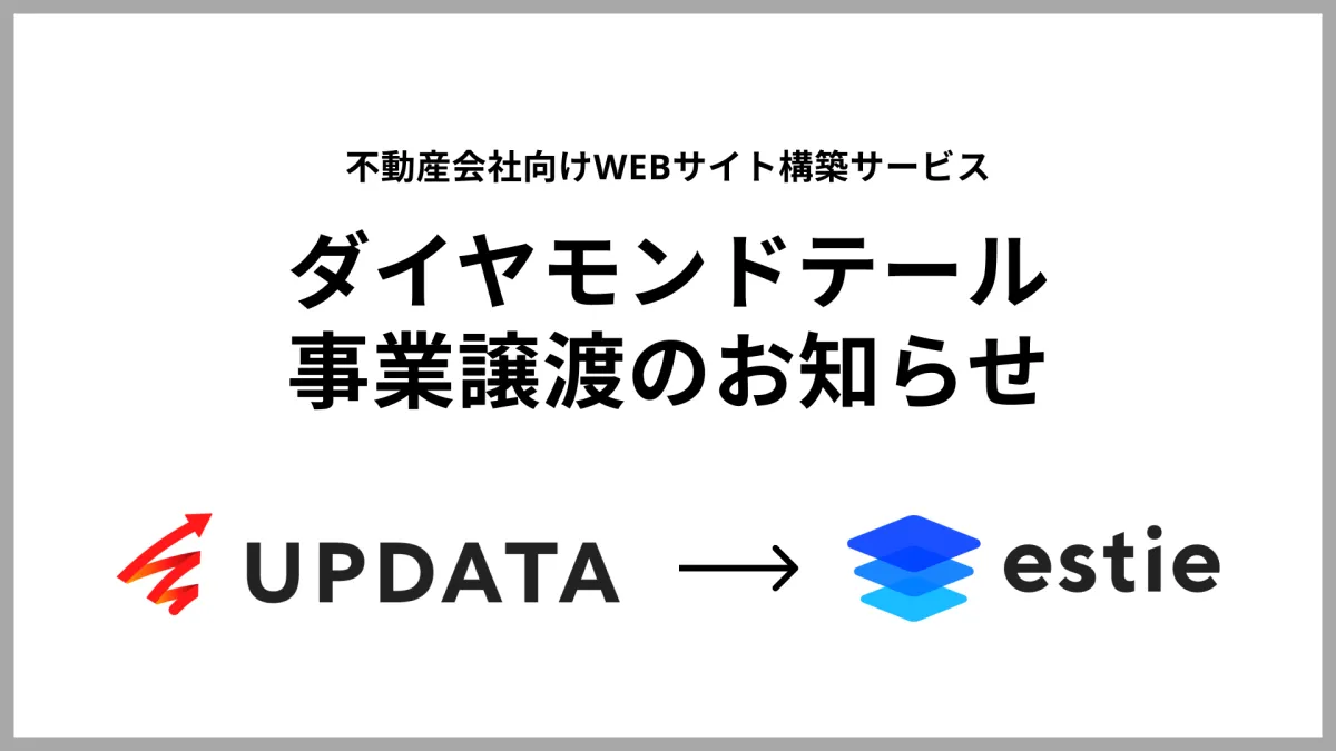 「ダイヤモンドテール」は、不動産業界に特化したWEBサイト制作と募集情報管理のノウハウを蓄積したサービスで、多くの不動産会社の情報発信や集客を支援してきました。しかし、最近の不動産業界ではデジタル化の進展により、データを活用したマーケティング活動や業務の変革が求められています。このような背景から、UPDATAは本事業のさらなる成長を見込む中で、業界最先端のデータ基盤を持つestieに譲渡することが最善であると判断しました。