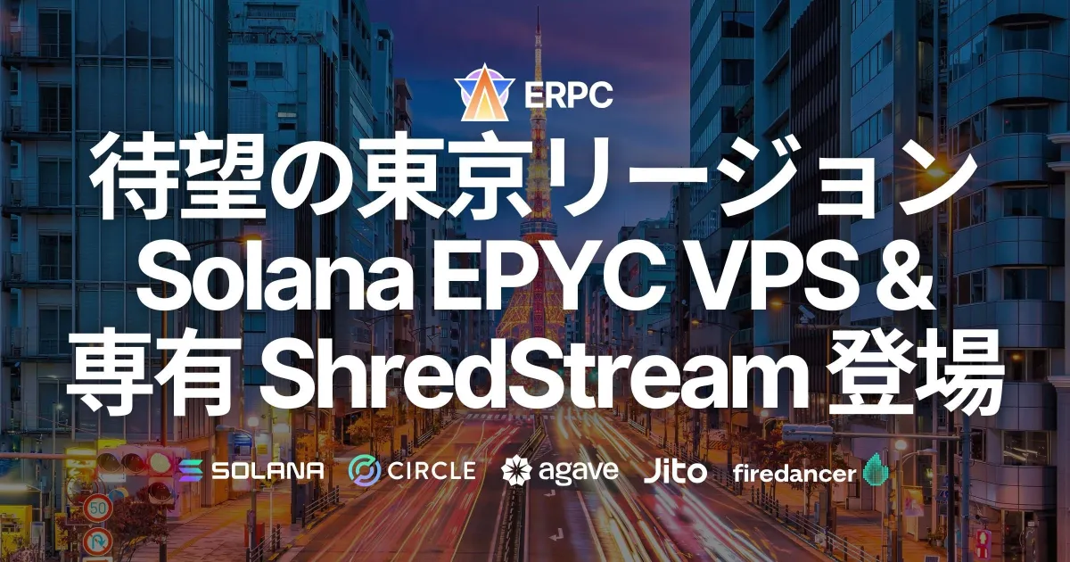ELSOUL LABO B.V.が運営するERPCが待望のTokyoリージョンに進出し、高性能Solana EPYC VPSと専有ShredStreamの提供を開始しました。この新サービスは、既にニューヨーク、フランクフルト、アムステルダムで即完売となり、その性能が評価されています。