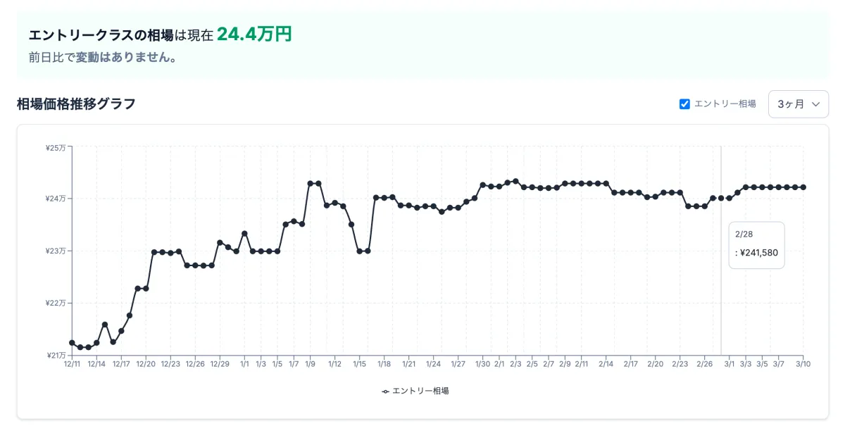 3月には決算や新生活セールの影響による実質的な還元が期待されています。価格が現状の高水準からどう変動するのか、特に新生活時の需要が価格に与える影響が注目されます。