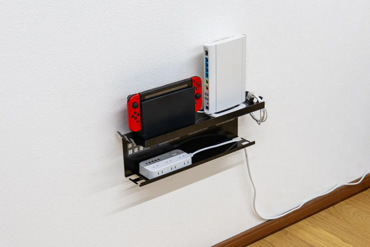 今回のメインプロダクトは、ホッチキスで固定する「テレビ壁掛金具」と「テレビ背面ラック」です。「テレビ壁掛金具」は、特に石膏ボードの壁に対応しており、スリムなデザインで壁面からの飛び出しを抑え、スッキリとした印象を与えます。これにより、部屋の見た目を整えながら、機能性を高めることができます。具体的には、テレビ壁掛金具Miniは19~32インチ(最大18kg)のテレビに対応し、通常版は37~65インチ(最大32kg)のテレビをしっかりと支えます。