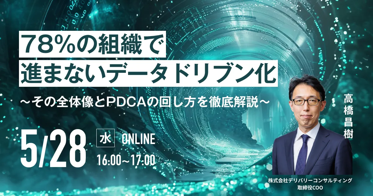 近年、企業はデータ活用を通じた成長を求められていますが、その道のりには多くの障壁が存在します。株式会社デリバリーコンサルティングは、そんな企業の悩みを解消するために、WEBセミナー『78%の組織で進まないデータドリブン化 〜その全体像とPDCAの回し方を徹底解説〜』を開催します。このセミナーでは、データを効率的に活用し、組織の変革を推進するための手法について詳しく解説します。